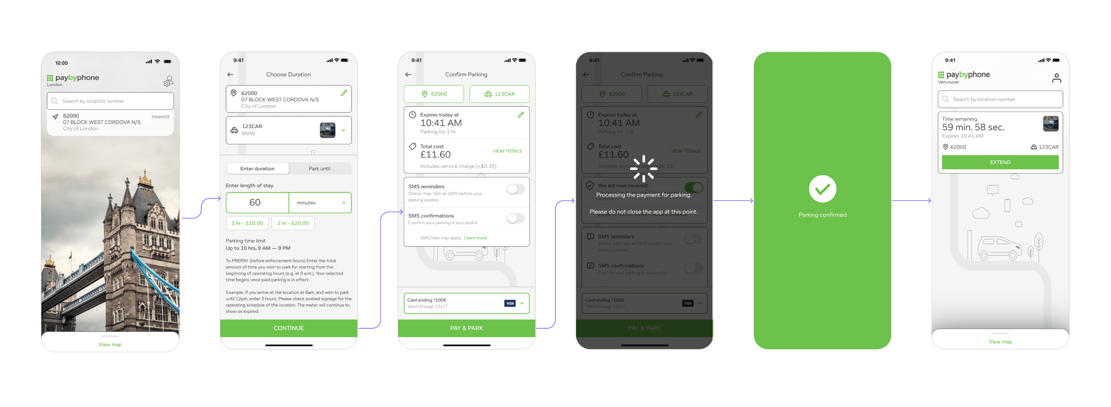 Methodology: I conducted moderated tests with 18 participants. The tasks included purchasing insurance, extending parking, and stopping parking early.