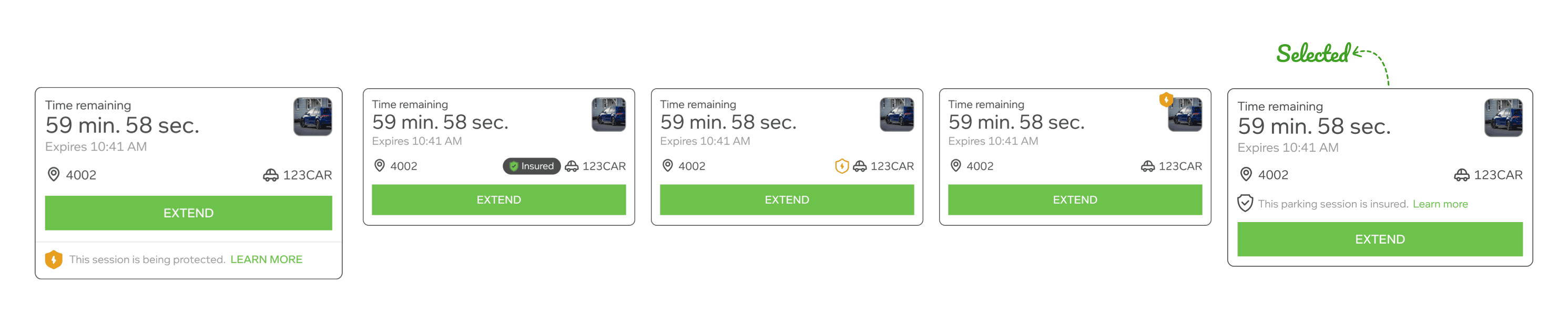 The Winner: The selected design provided a clear, persistent "Session Protected" status directly on the active parking card, along with a prominent link to "Learn more" (which opens the in-app overlay). This gave users immediate, constant reassurance without cluttering the primary parking status, fully closing the trust loop.